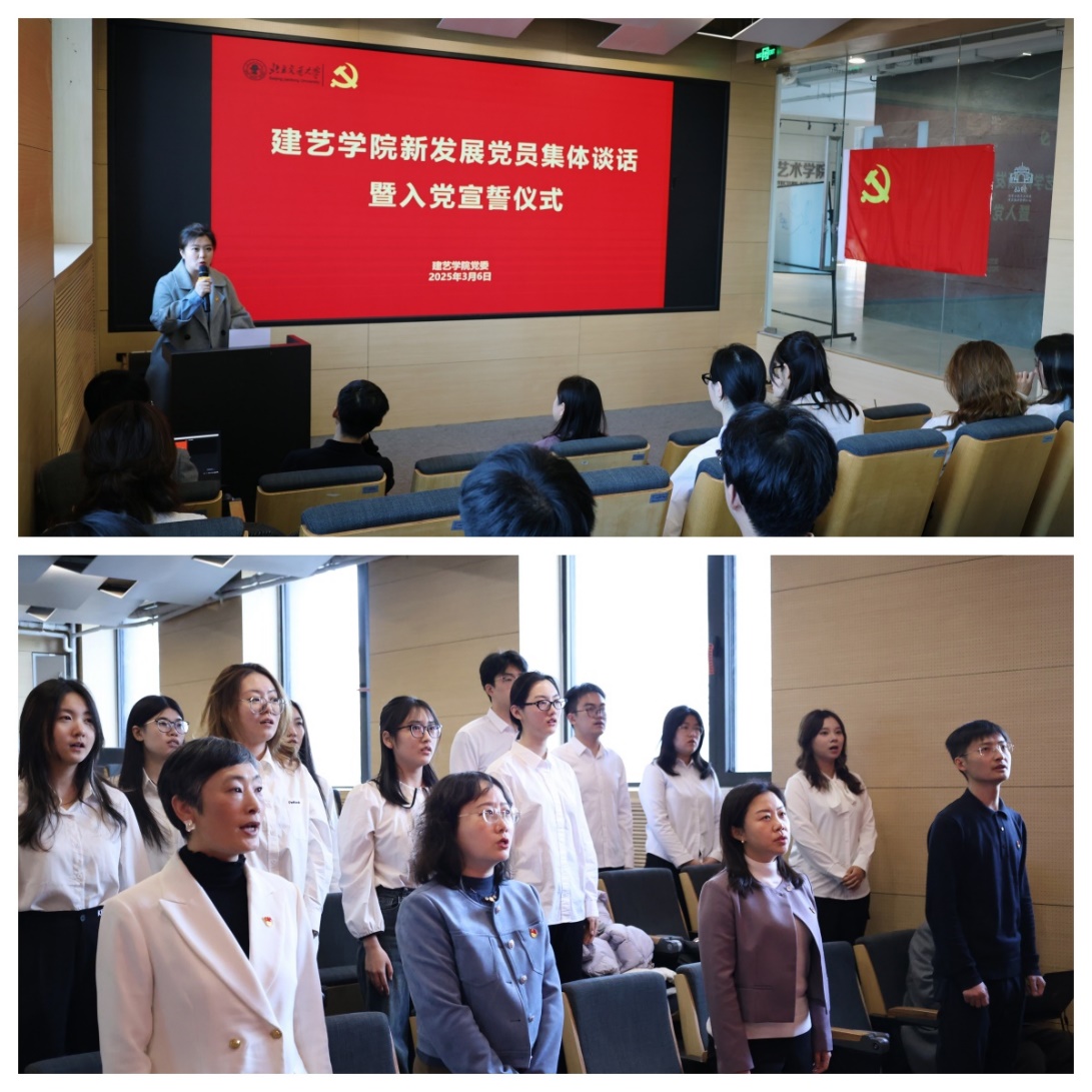 为进一步提高新发展党员对党的认识,加强党性教育,不断提高党员教育和培养质量,激励广大新发展党员坚定理想信念,牢记宗旨使命,2025年3月6日,哔咔漫画 在学院一层报告厅举行新发展党员集体谈话暨入党宣誓仪式。学院党委书记秦思阳,北京市优秀共产党员、建筑系蒙小英教授,哔咔漫画 优秀共产党员、建筑系副主任李珺杰教授,学院党委专职组织员、学院学生工作组全体成员和学院 11名新发展党员参加了活动。活动由学院学工办主任张京主持。