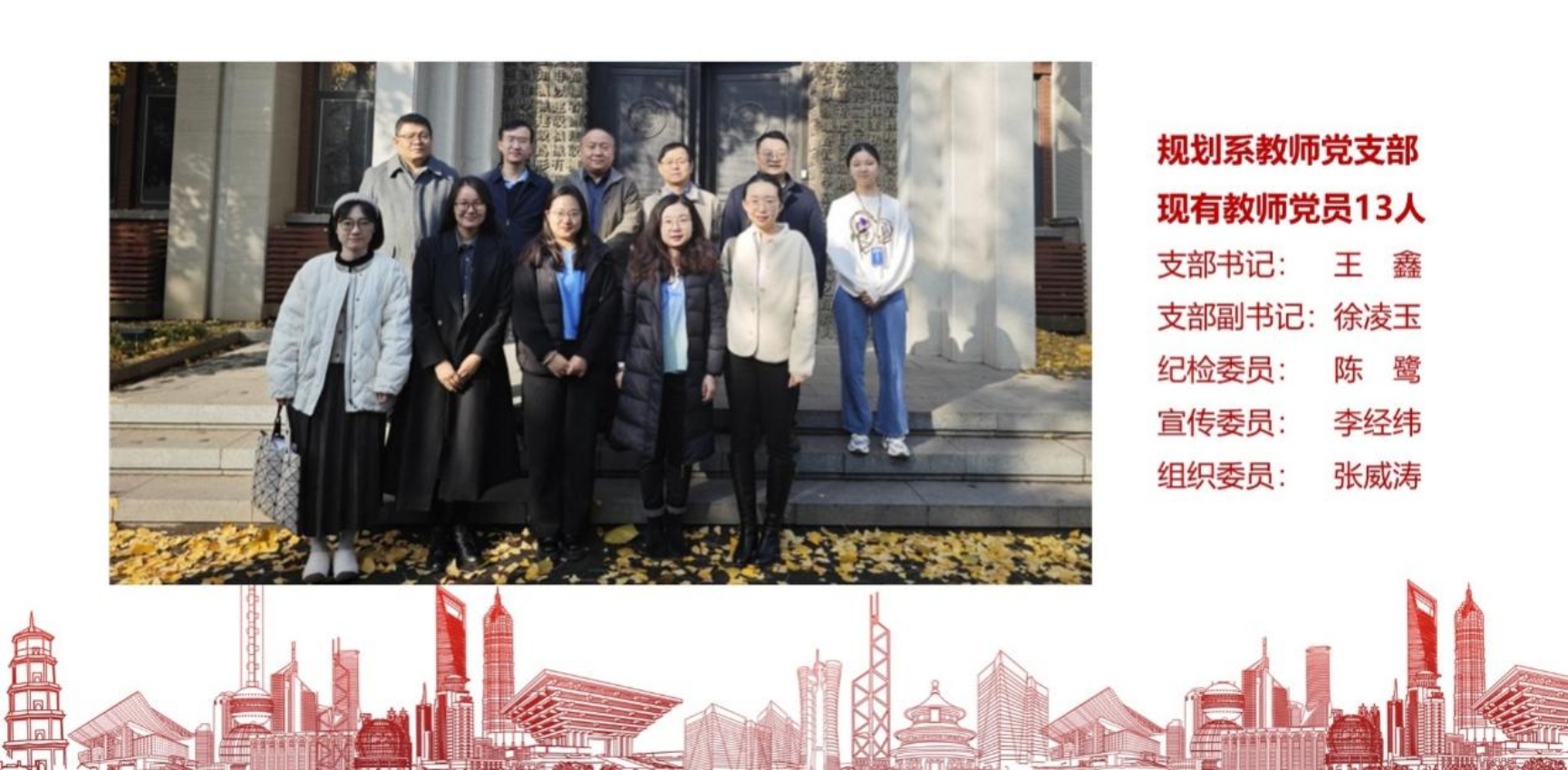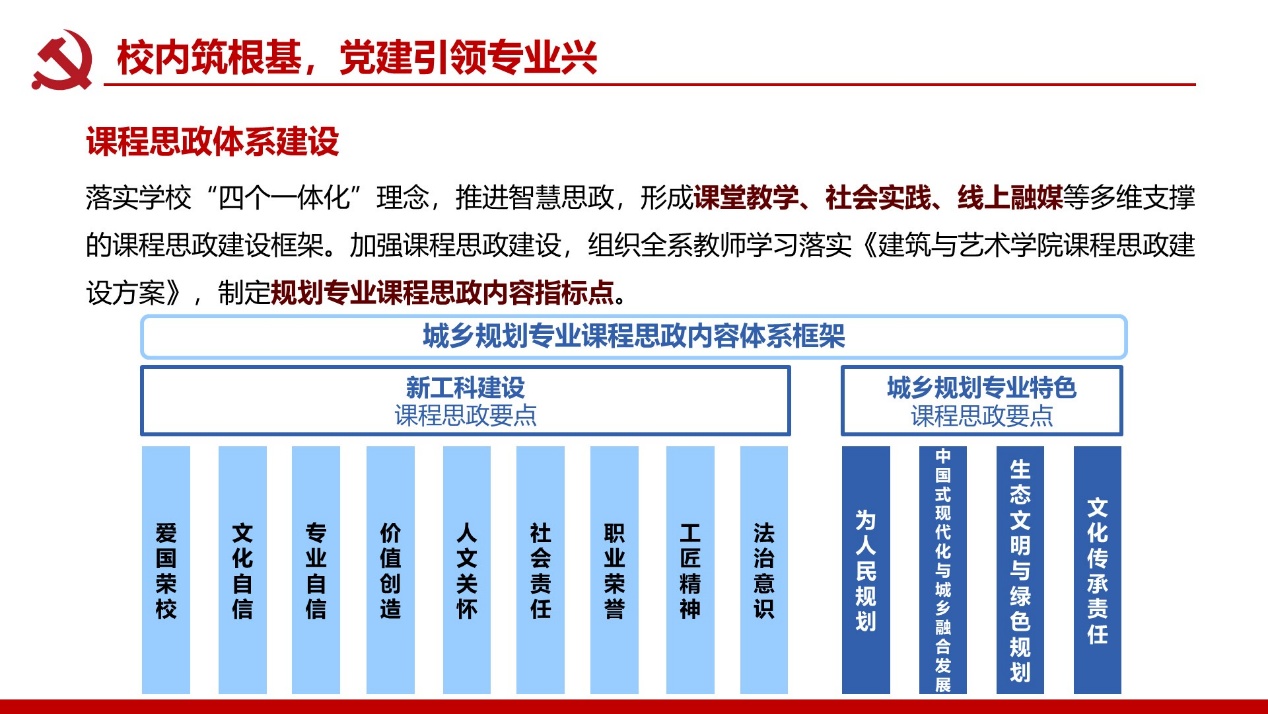 哔咔漫画 城乡规划系教师党支部共有党员教师13人,支部始终紧扣立德树人根本任务,通过夯实基础、凝聚力量、强化实践,推动学科与党建深度融合。支部围绕学科发展、文化传承与社会需求,探索 “师生协同、校地融合、校企共建”多维创新机制,成效显著。
