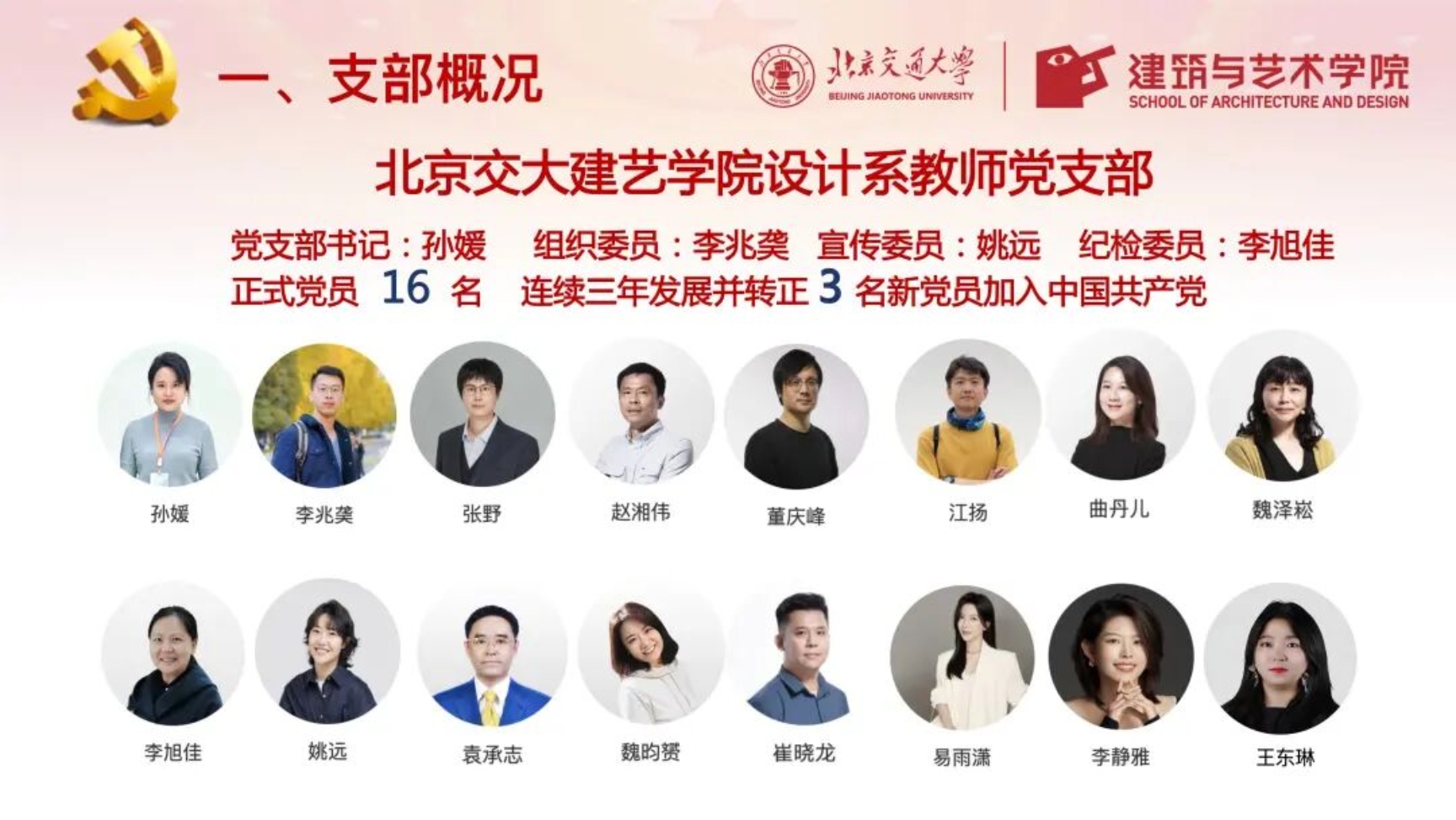 设计系教师党支部共有正式党员 16 名,在上一任书记的努力下,连续三年发展并转正 3 名新党员加入中国共产党,为设计系党支部的工作打下了坚实的基础。