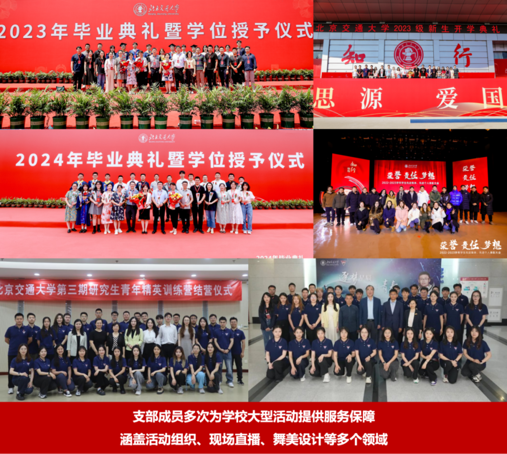 争做学生工作的“主力军”。完成学业科研任务之余,超过半数支部成员在学校、学院各级部门担任学生骨干,累计为学校毕业典礼、开学典礼、表彰大会、研究生学生骨干训练营、研究生代表大会等20余次重大活动提供服务保障,贡献建艺力量。