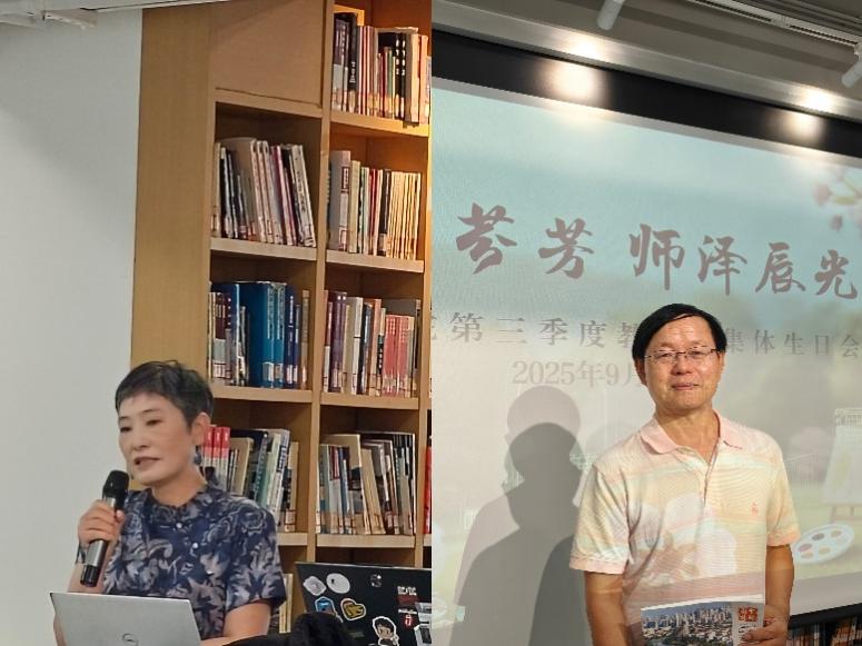 秦思阳代表学院向全院教师致以诚挚的节日问候,向本季度过生日的老师们送上生日祝福。她强调教师是立教之本、兴教之源,师德师风建设关系到学院高质量发展大局。希望全体教师牢记为党育人、为国育才的初心使命,向学院师德模范老师学习、向典型人物看齐,为培养更多德智体美劳全面发展的社会主义建设者和接班人作出新的更大贡献。