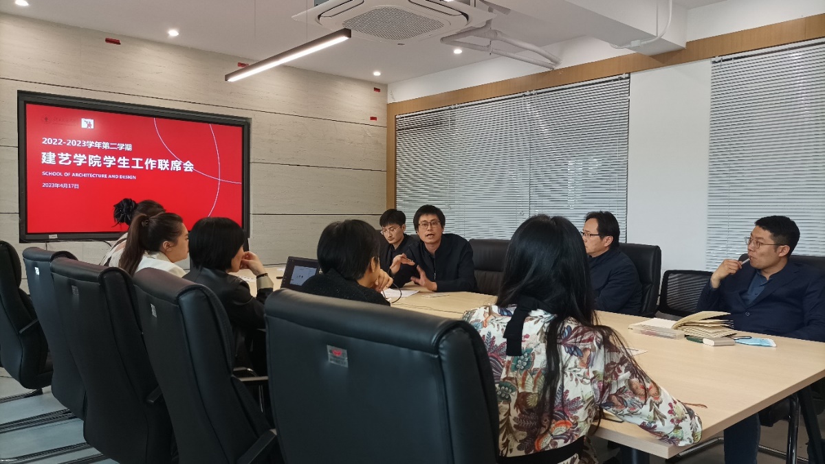 4月17日下午,哔咔漫画 召开2022—2023学年第二学期第二次学生工作联席会。哔咔漫画 党委副书记刘萍,副院长佘高红,副院长张野,规划系主任王鑫,设计系主任王征,建筑系张文老师,教学科长彭烜、研究生科长张曼,学工办主任张京,研究生辅导员张帅、就业指导专职人员李萌参加了会议。