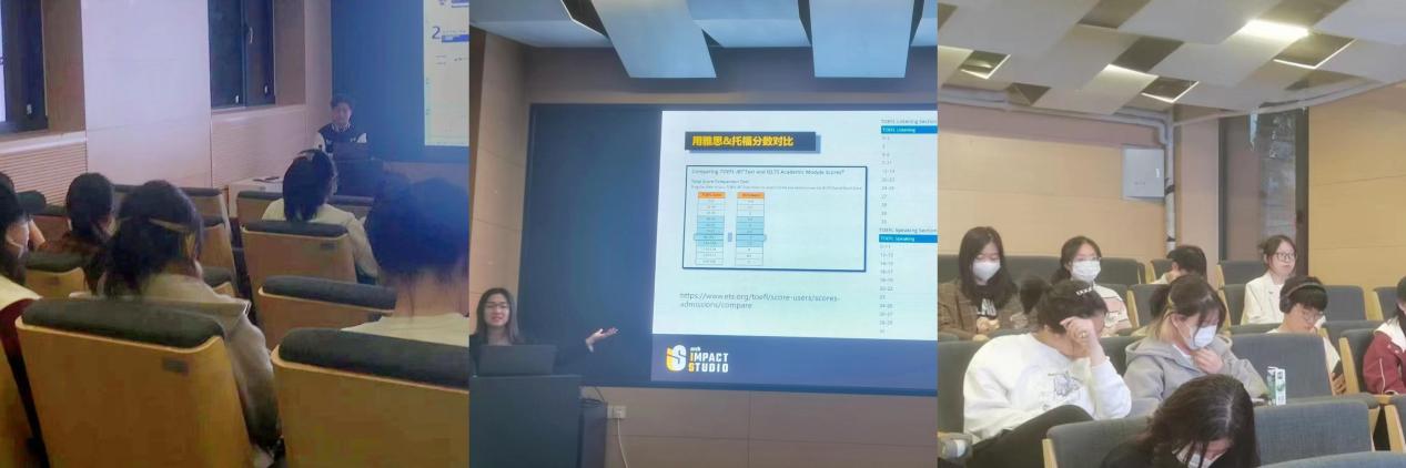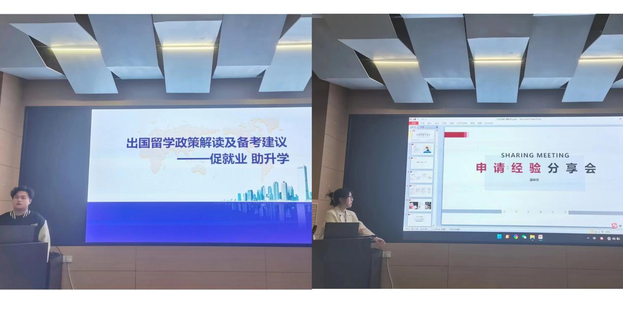 2023届毕业辅导员董博宇从升学就业形势分析、留学申请注意要点、升学规划建议、留学政策四个方面为同学们逐一进行讲解。建筑学2023届毕业生温林杰结合本人在留学申请过程中的实际经验,从留学的申请时间线、过程心态历程以及个人理解三个部分进行分享,与同学们交流了她在留学申请中遇到的一系列问题与感悟。留学指导郝婉蓉用多个国家留学数据做对比,使同学们更加直观的了解到各个国家的不同申请要求。她从各国院校申请难度、申请要求、时间规划等多个角度,进行了细致的讲解,解答了同学们在留学申请中的常见问题。