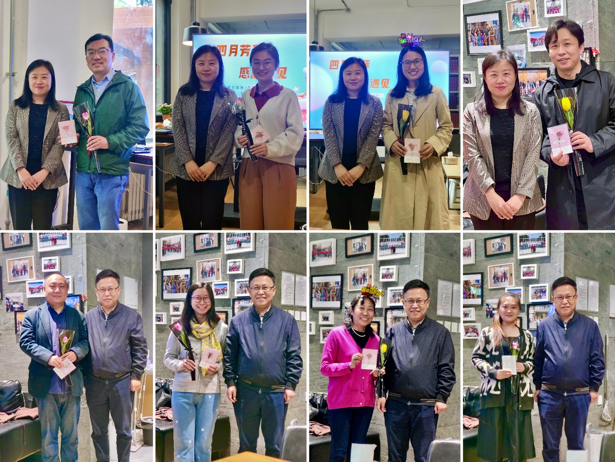 生日会在一片喜气祥和中热烈开场,过生日的老师现场抽取了生日祝福贺卡,党委书记秦思阳,院长韩冰为各位老师送上鲜花,宣读生日祝福。随后过生日的教师代表孙淑媛和裴昱分别发言,讲述自己与交大的故事,分享这份喜悦与感动。生日会简单热闹,场充满了欢声笑语,大家一边品尝美味蛋糕与咖啡,一边分享最近的经历与变化。一捧鲜花、一句祝福、一份感恩,让教师们感受到学院的关怀,感受到集体的温暖。