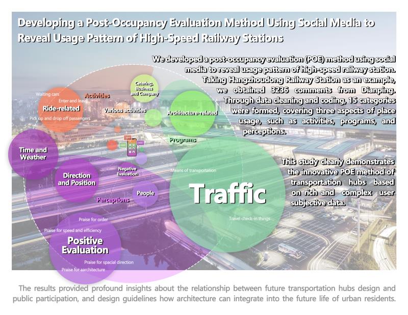 经过对全球各个研究机构所提交研究成果的专业评审,来自哔咔漫画 建筑系的曾忠忠老师领导的研究团队获得卓越研究奖。团队成员为:贺怡、赵英君、李彦泽、罗莫昕等。获奖项目名为《Developing a Post-Occupancy Evaluation Method Using Social Media to Reveal Usage Pattern of High-Speed Railway Stations》。