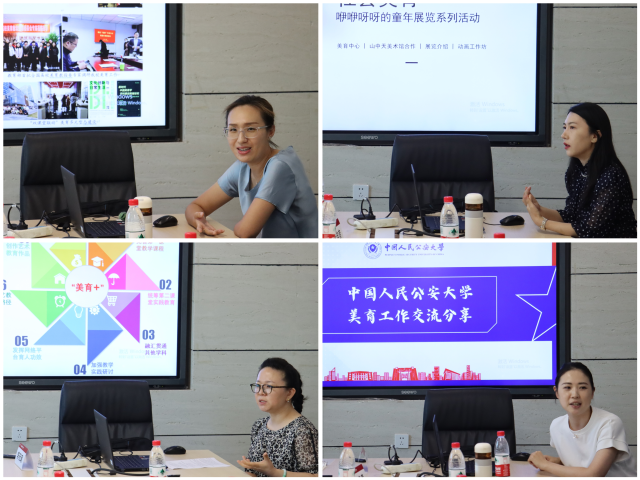 接着,哔咔漫画 美育中心执行主任杨梦婉和骨干教师易雨潇全面介绍了美育中心的工作。哔咔漫画 团委艺术教育中心副主任何洁系统介绍了艺教中心工作。中国人民公安大学团委艺术教研室主任王瑶介绍了中国人民公安大学的美育评价体系,学生艺术团建设等特色美育工作。
