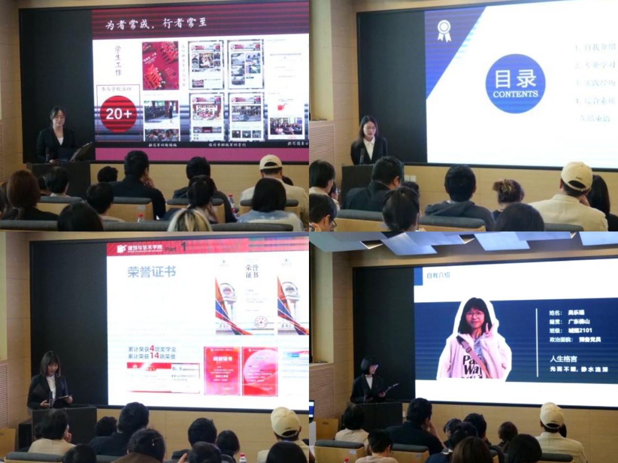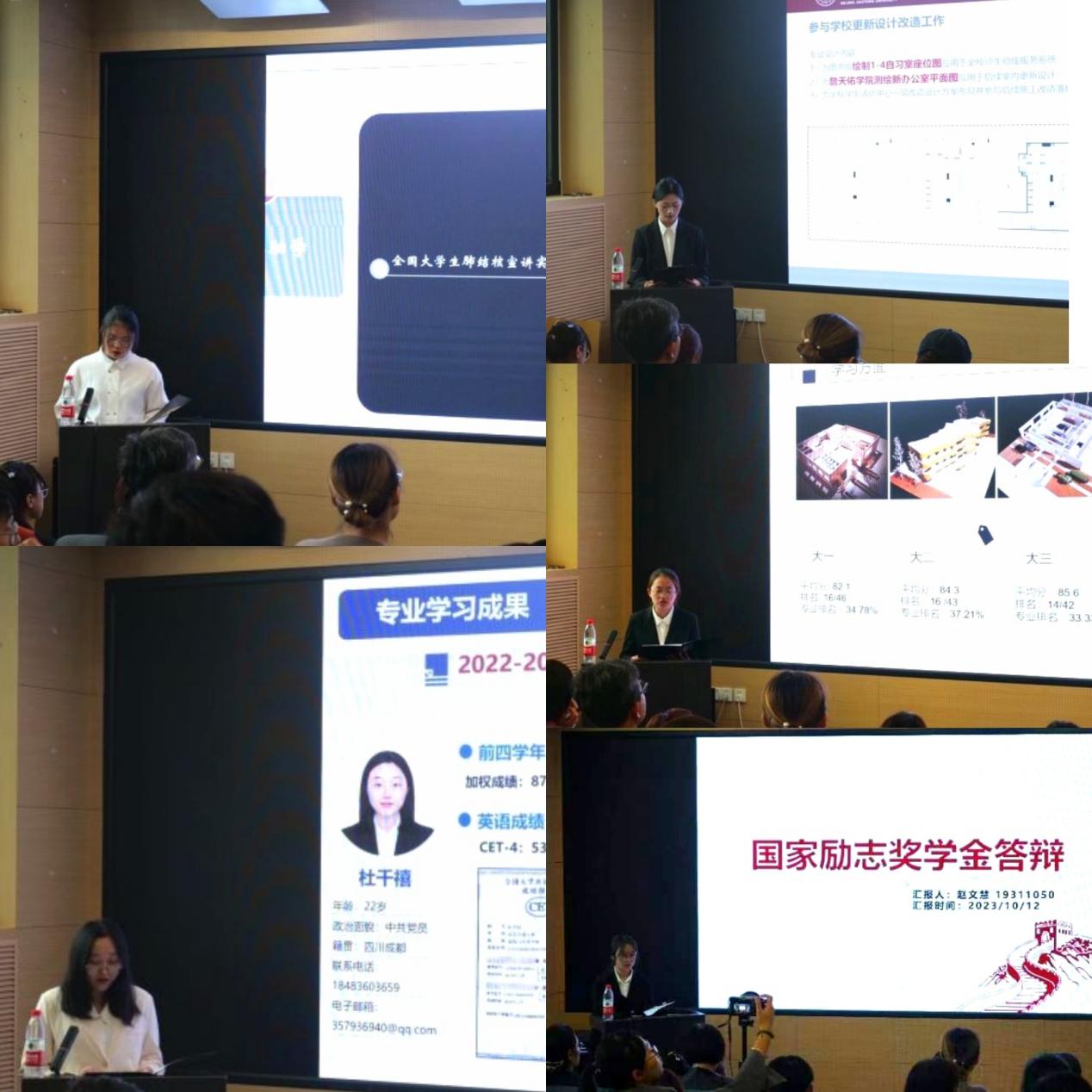 10月11日、10月12日,哔咔漫画 在建艺楼一层报告厅分别举行2022-2023学年国家奖学金和智瑾专项奖学金、国家励志奖学金展示会。学院党委副书记刘萍,副院长张野,建筑系主任盛强、副主任曾忠忠,城乡规划系主任王鑫、副主任张纯,设计系主任王征、副主任杨梦婉,教学科科长彭烜,学生工作组全体人员,2023级学生代表担任答辩会评委。
