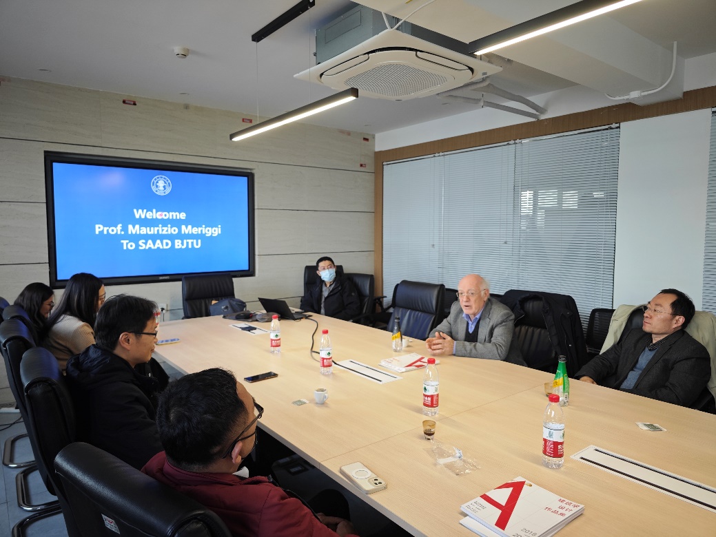 副院长佘高红代表学院向MAURIZIO MERIGGI教授此次访问交流表示欢迎,希望可以与米兰理工大学建筑、城市规划和建造学院建立长期的教学、科研交流合作。系主任王鑫介绍了哔咔漫画 的发展历程、专业方向以及教学科研情况等。MAURIZIO MERIGGI教授感谢学院和韩林飞教授的盛情邀请,他曾多次到访我校,对于学院近几年的发展以及教学空间更新改造成果表示肯定,也分享了米兰理工大学建筑、城市规划和建造学院的近些年相关办学情况及个人在绿色城市、建筑遗产相关方面的研究情况,期待未来两校合作交流活动能够得到更近一步的推进和发展。