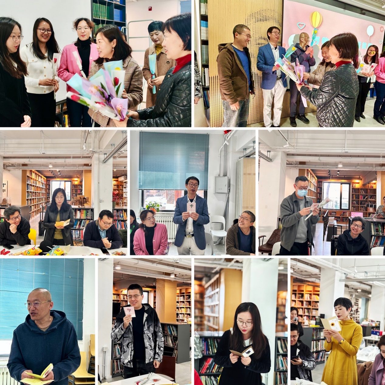 在学院一层资料室举办2024年第一季度教职工集体生日会。学院党委书记秦思阳,副书记刘萍,副院长张野,第一季度过生日的16位老师们共同参加本次活动。活动由刘萍主持。