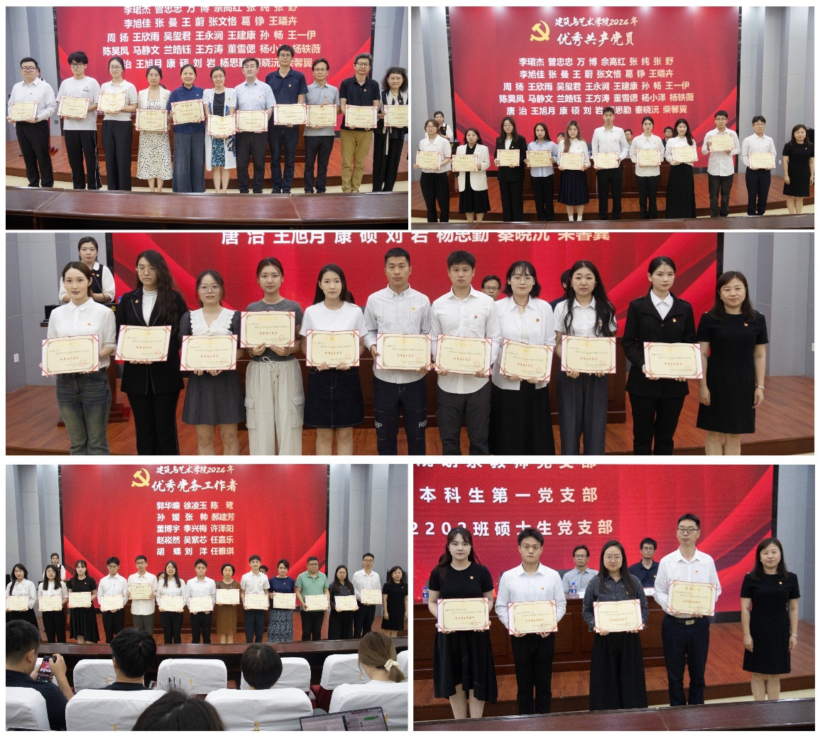 学院党委副书记刘萍宣读学院2024年“两优一先”表彰决定,授予设计系教师党支部李旭佳33名同志为“优秀共产党员”,授予机关党支部郝建芳等15名同志为“优秀党务工作者”,授予本科生第一党支部等4个党支部为“先进基层党组织”。学院党委书记秦思阳为获奖集体代表和个人颁奖。