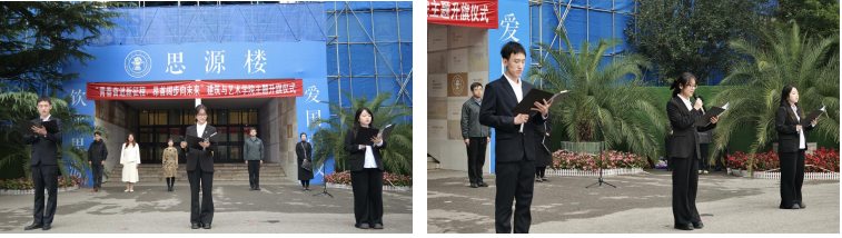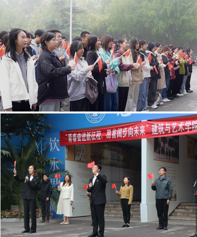 升旗仪式上,2024 级本科生侯浩然、杨依依深情领唱,全场师生共同唱响《我爱你,中国》,抒发着建艺师生对祖国的深切热爱和美好祝愿。