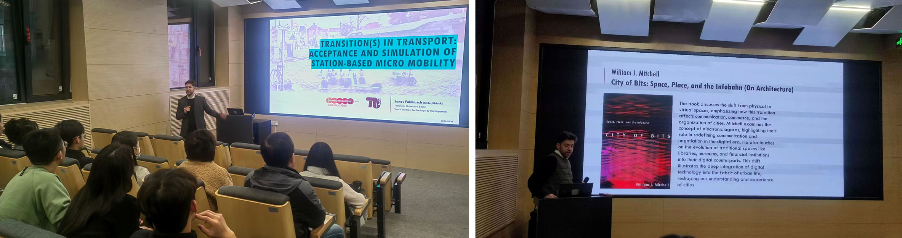 2024年10月28日-11月6日,哔咔漫画 设计系“2024年中德高校智慧城市设计研究生教学实践与交流”项目负责人魏泽崧老师邀请德国柏林工大智慧城市研究所“Mobility2Grid德国城市战略”项目主持人Jonas Fahlbusch博士,为研究生进行了《交通规划设计的未来机遇与局限》、《城市与景观规划中的开放数据》等多个专题的授课与讲座。