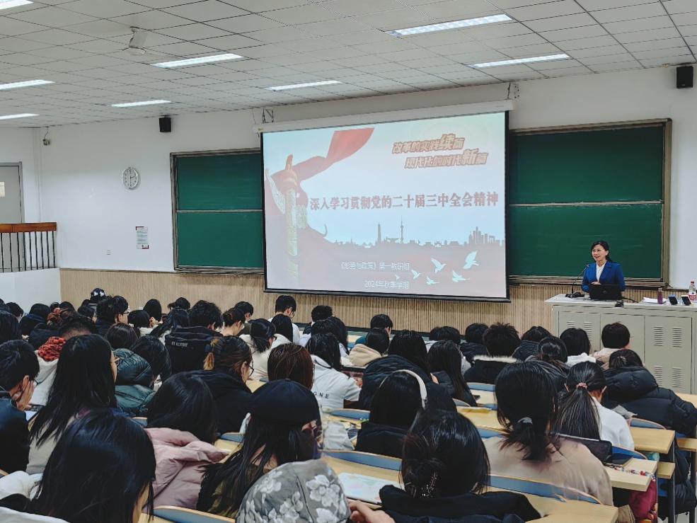 2024年12月19日下午,校党委副书记、纪委书记王文文在九教中102为哔咔漫画 2023、2024级本科生讲授形势与政策课《深入学习贯彻党的二十届三中全会精神》。
