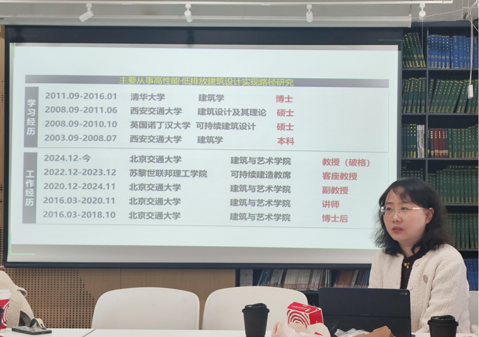 李珺杰分享了自己在教学科研、专利转化、指导学生竞赛及对外合作项目中的拼搏历程与成果,尤其介绍了在灾后重建、低碳建筑和乡村振兴等领域的深入研究,凸显了科研工作必须服务国家战略的价值导向。她鼓励青年教师把学术研究与实践应用紧密结合,在追求学术进步的同时,注重研究成果的实际应用,为国家发展贡献力量。