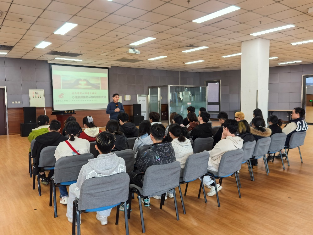 张驰老师以《心理委员角色认识与危机处理》为主题,结合典型案例与实务经验,系统阐释心理委员的职能定位,结合《大学生心理危机干预指南》,梳理了心理危机识别与上报的标准化流程。他强调,心理委员是校园心理健康工作的“前沿哨兵”,需切实履行“动态观察员”“朋辈支持者”与“危机联络员”三重职责,重点关注学生群体中的情绪波动与行为异常信号。心理委员也应秉持“助人自助”理念,在关怀他人的同时注重自我心理调适,做到“既传递温暖,亦守护自身能量”。