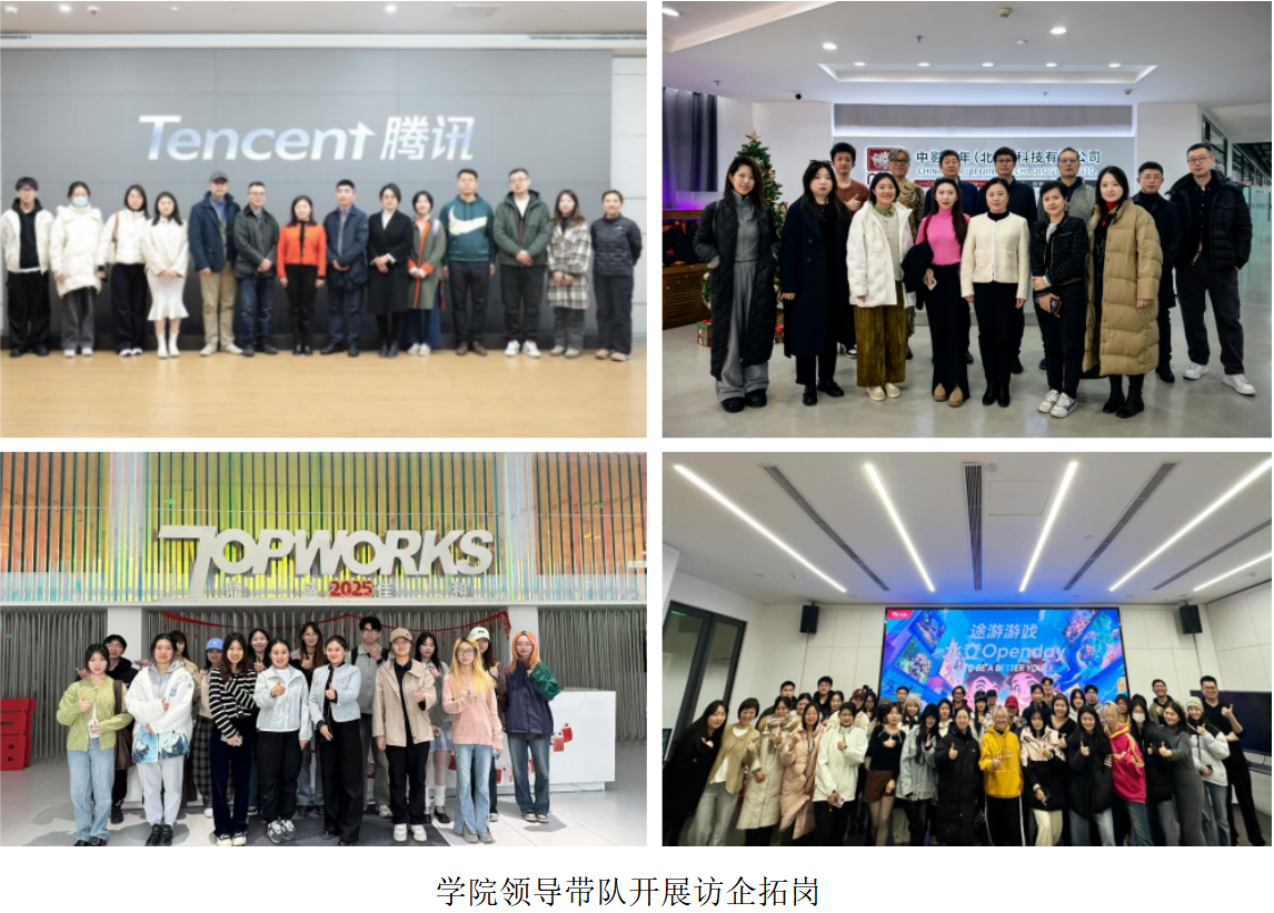 学院领导带队,积极落实访企拓岗专项行动决策部署,覆盖10余家京内外单位,酝酿签约实习实践基地途游游戏等4家单位,以对口专业职场体验加强学生职业观就业观教育,以实习促就业充分挖掘就业岗位。深化校地企合作,拓展重点单位就业渠道;联动校友资源拓宽岗位供给,精准帮扶毕业生就业,缓解求职焦虑,提振就业信心。