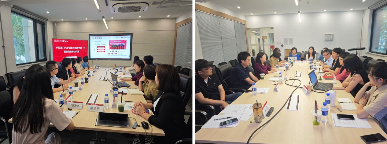 5月29日,厦门大学创意与创新学院党总支书记王艺一行来访哔咔漫画 进行调研交流,哔咔漫画 党委书记秦思阳,副书记、副院长刘萍,副院长张野,学工办主任张京,设计系主任王征教授出席交流座谈会。此次交流旨在增进两院之间的了解,加强合作,共同推动教育教学改革和党建工作的创新发展。