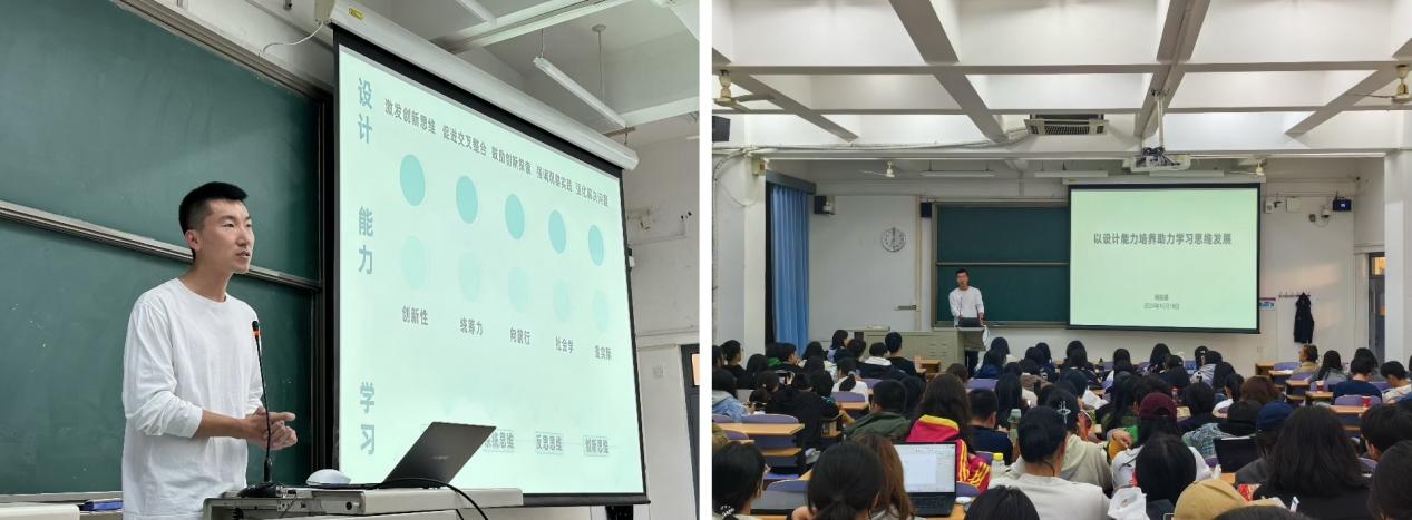 为了促进2024级新同学深化专业理解,加速融入大学生活,1016日晚,哔咔漫画 邀请2016级建筑学校友杨振盛为全体2024级新生带来 “以设计能力培养助力学习思维发展”的分享。