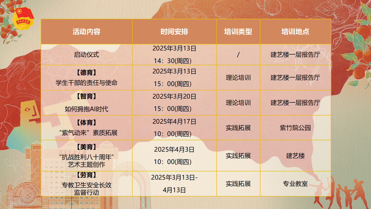 为深入学习贯彻习近平总书记关于青年工作的重要思想,扎实推进学院共青团思想引领工作,聚焦团学干部综合素质提升与五育融合发展,哔咔漫画 团委于2025年3月-4月举办2024-2025学年团校暨第五届 “瞭望者”计划学生骨干培训班,来自学院本研各学生组织、社团共80余名学生骨干参加了本次培训。