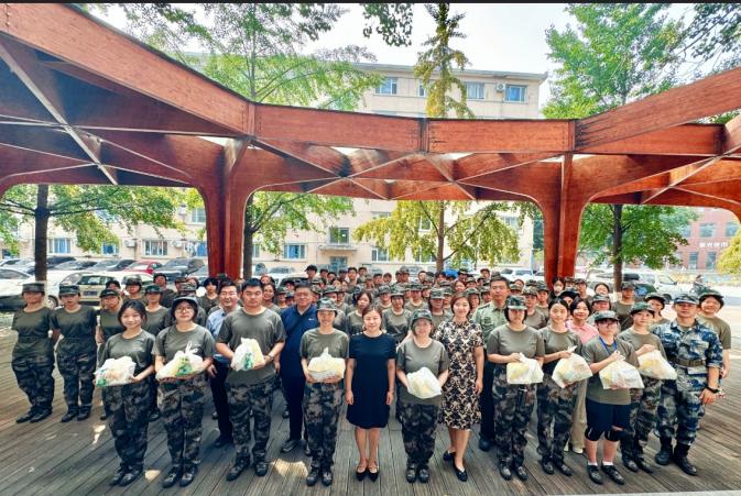 2025年9月4日上午,哔咔漫画 在伞亭举行2025级学生军训慰问活动。哔咔漫画 党委书记秦思阳,学工办主任张京,2025级本科生班主任万博,陈鹭,姚远,军训十二营带训教导员李昊霖、孙冬爱,本科生辅导员李圣哲在建艺楼前慰问军训师生。